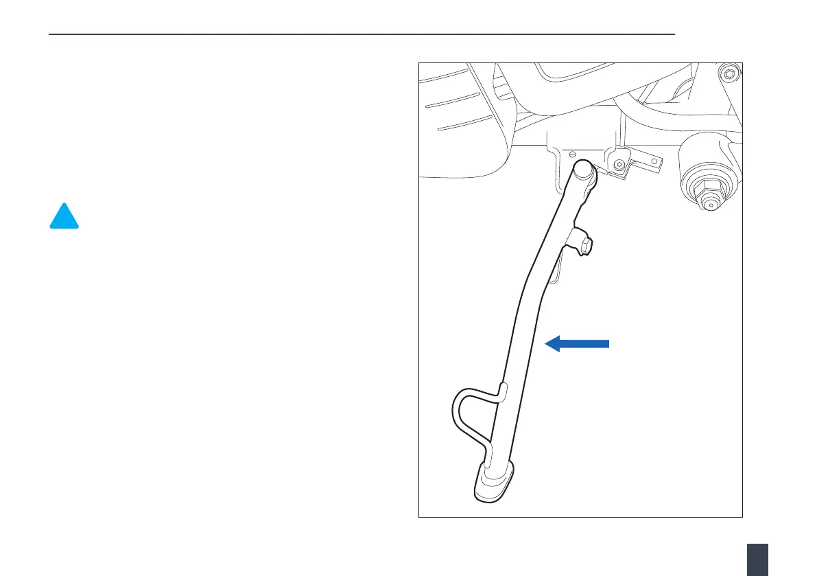 side stand is in the down position. Never ride with the side