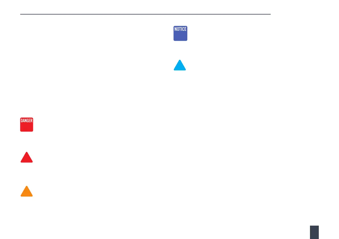 WARNING, CAUTION, and NOTICE alert you to the potential hazards.