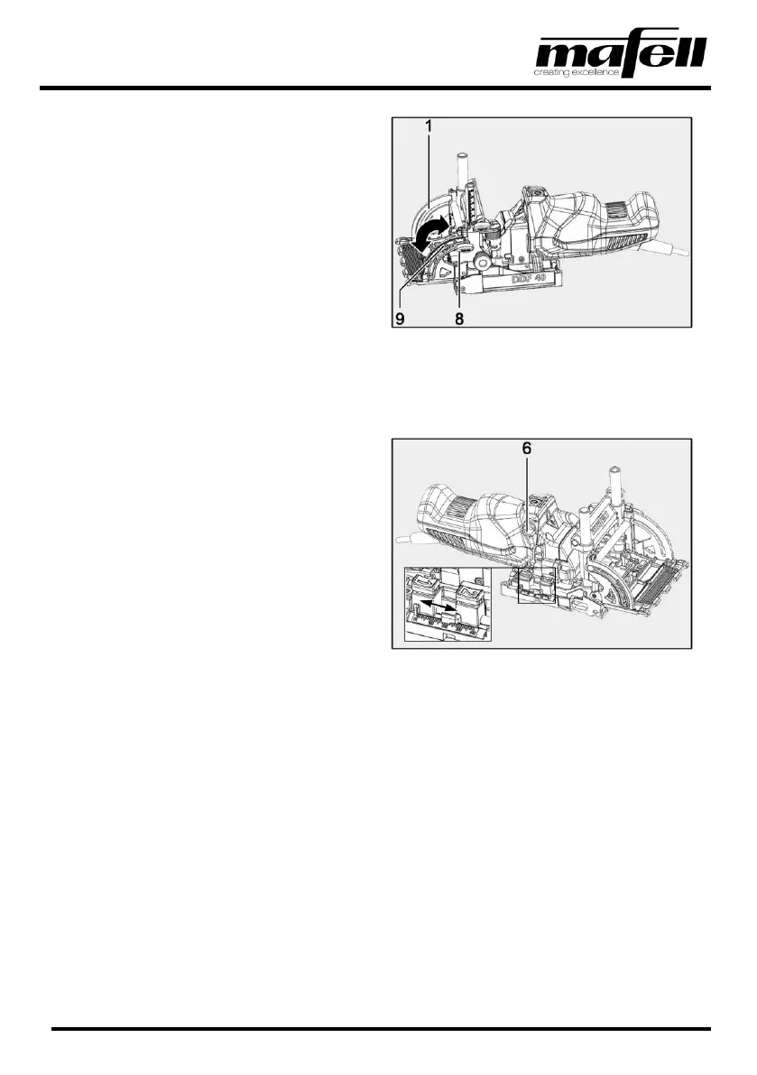 1. Loosen the wing screw (8) for the swivel setting.
