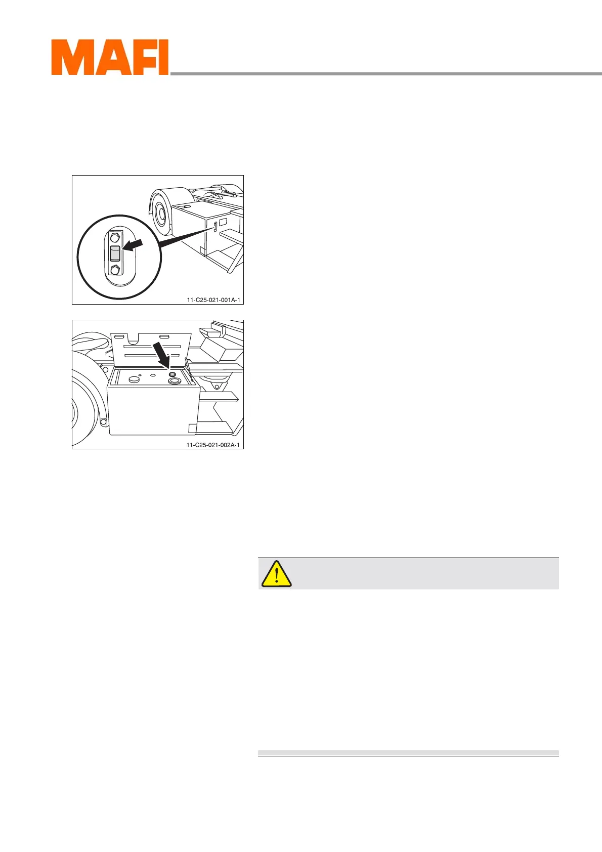 X Refill hydraulic oil into the oil filler nozzle if necessary.