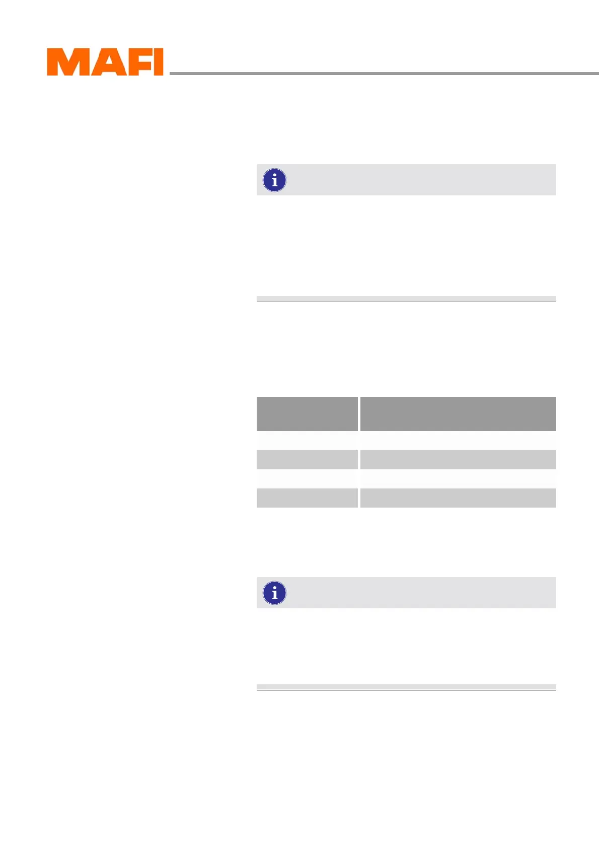 anti-freeze protection according to the following table: