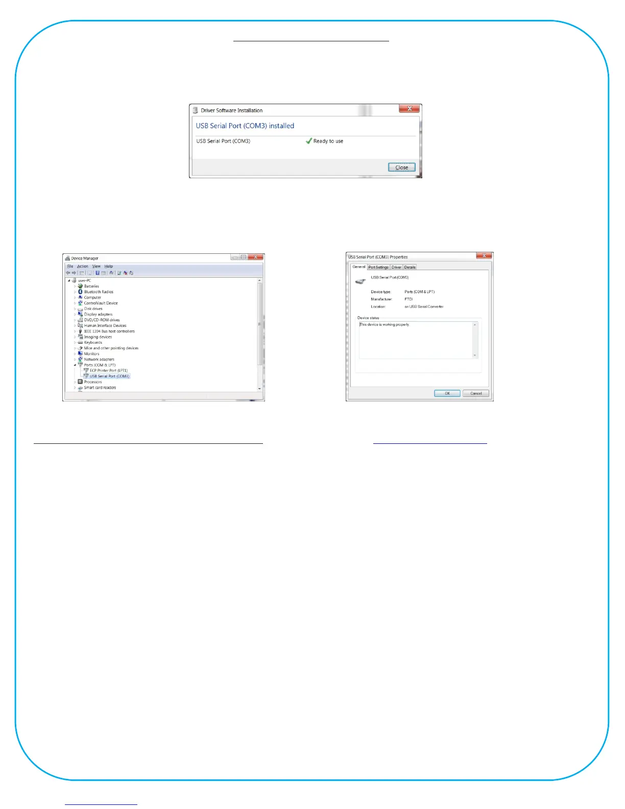on your pc. Look for the USB Serial Port (COM #) and note the port number. If you double click this