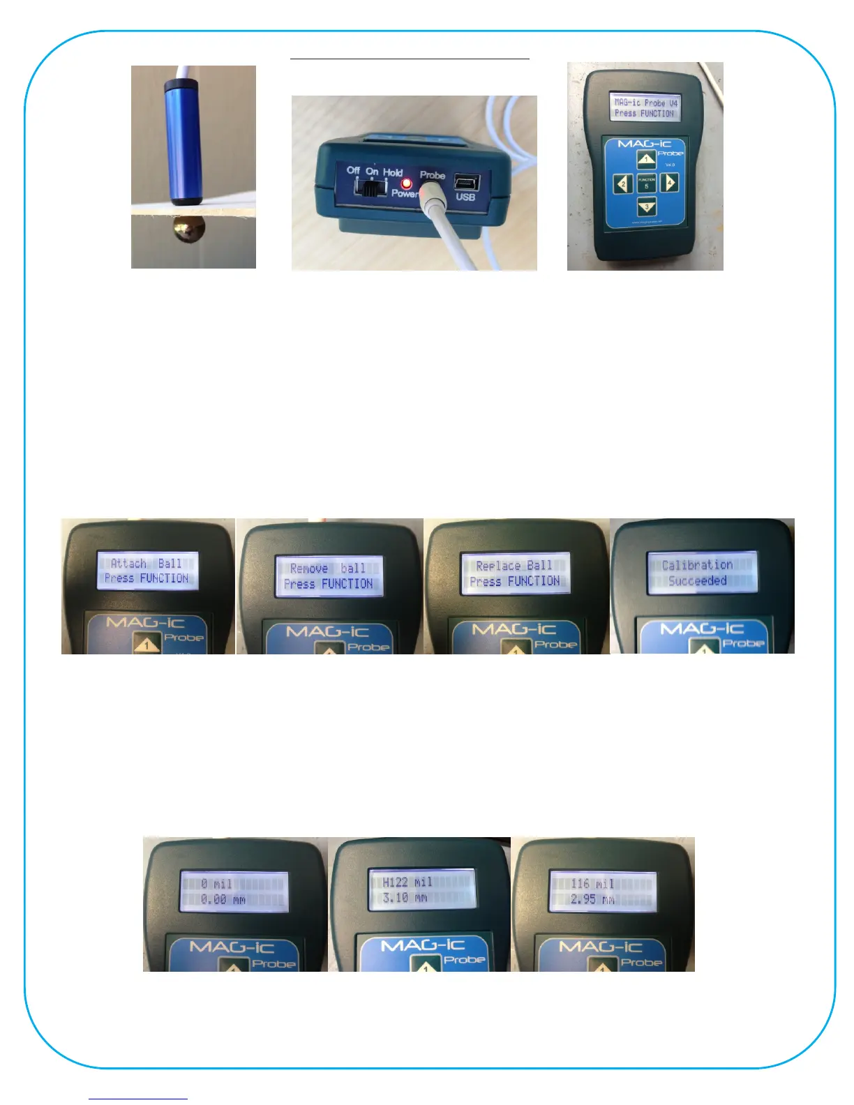 Ÿ Attach magnet to Probe. MAG-ic probe is supplied with 2 magnets, a ½” ball and a smaller