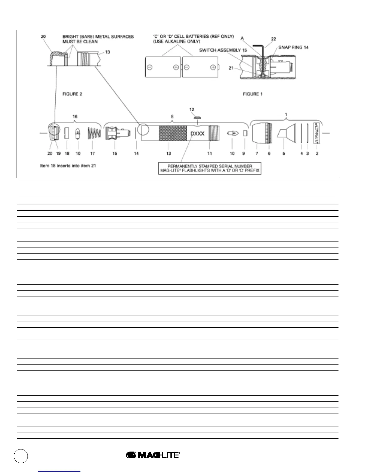PARTS LIST FOR BLACK ‘D’ AND BLACK ‘C’ MAG-LITE® FLASHLIGHTS (PREFIX 'D' or 'C' SERIAL NUMBER)