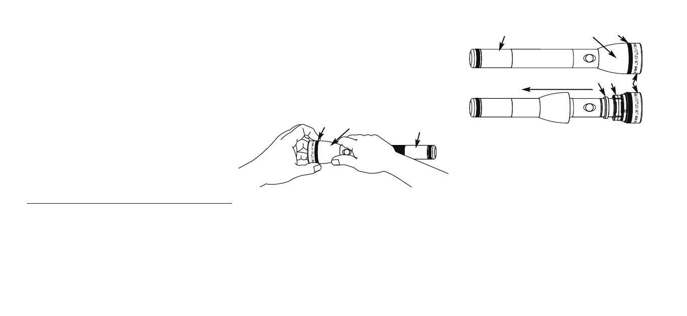 corps de la lampe (B) jusqu’à l’arrière de la bague moletée (E). Si vous