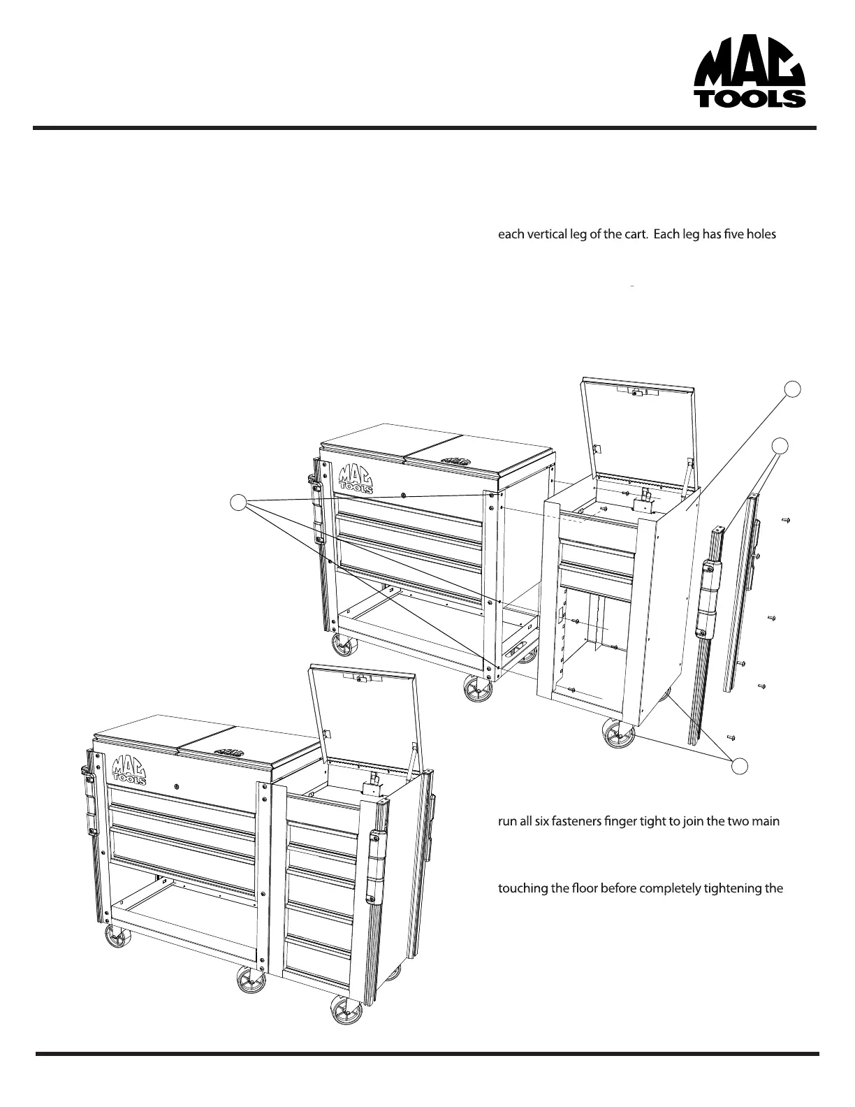 5. Make sure the Side Box/Cab is level and all casters are