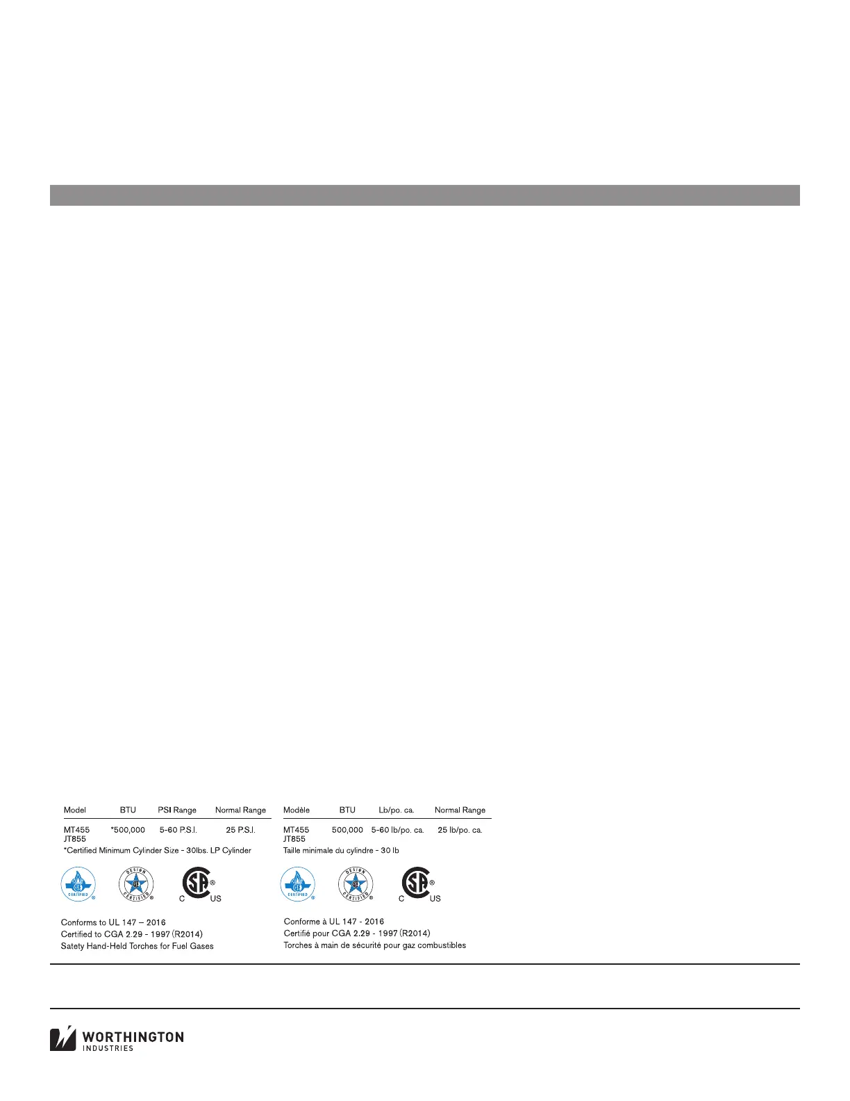 9. O maçarico não deve ser usado com um cilindro com capacidade inferior a 20 lb (9 kg).