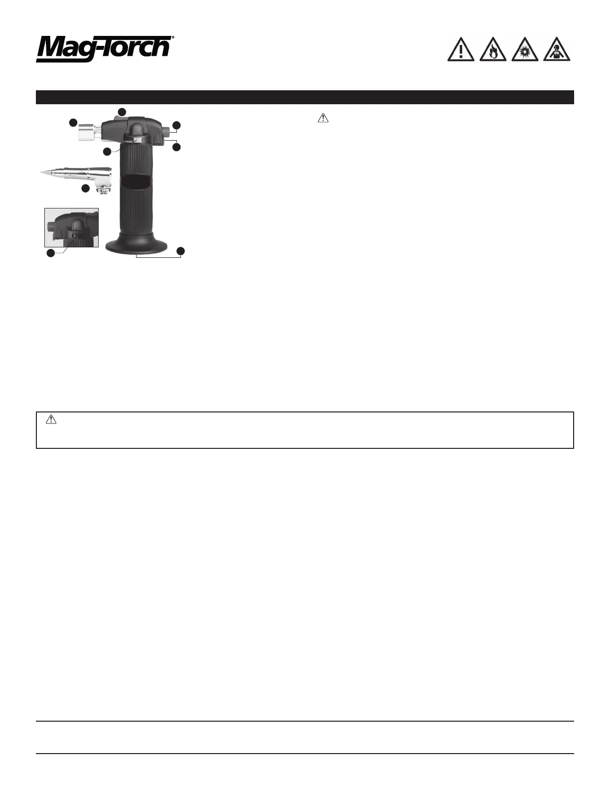 • Ne pas modifier le chalumeau de quelque manière que ce soit. Ne pas modifier les réglages d’origine. Des blessures graves, voire mortelles, risquent de