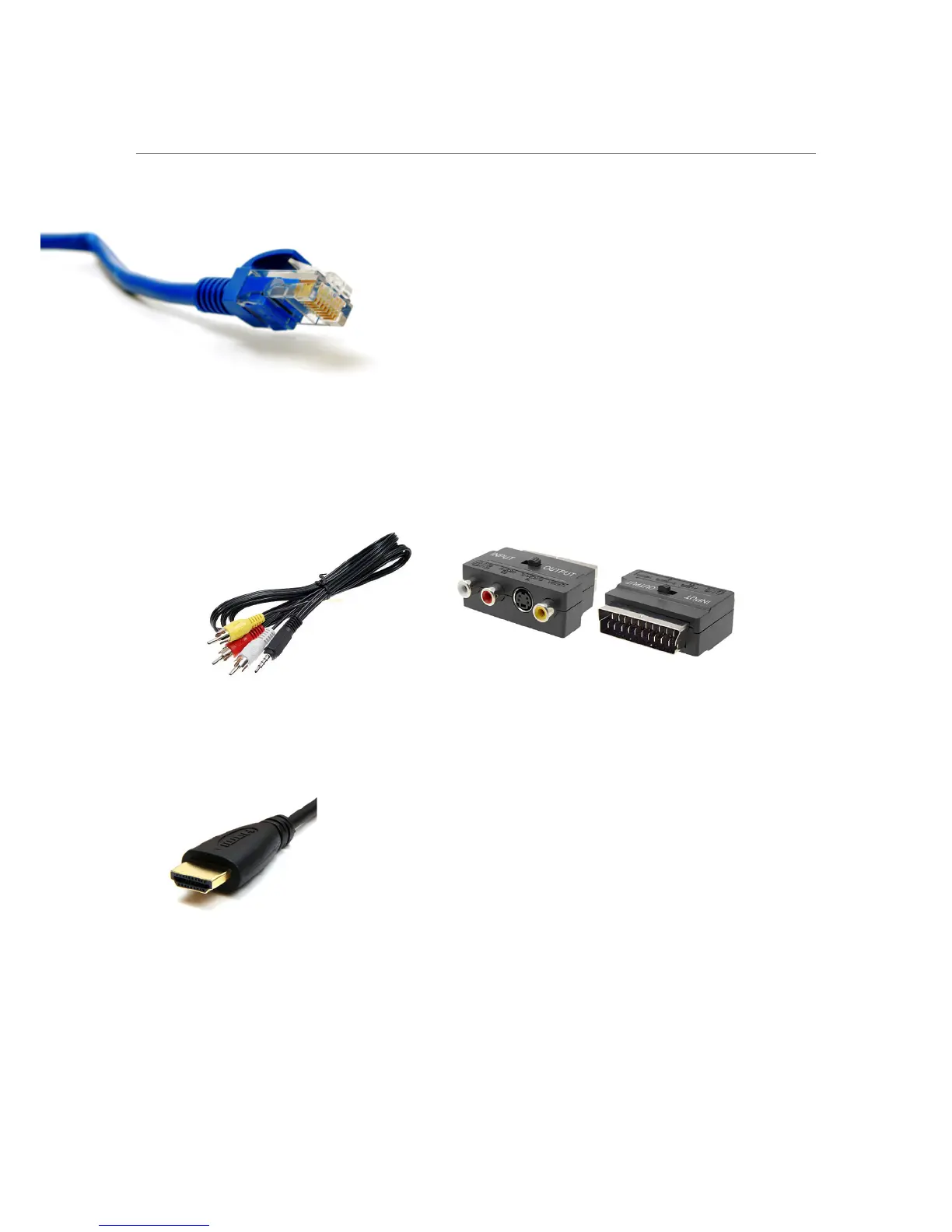 RCA cable (Red, white and yellow) which is compatible with most TVs. If your TV doesn’t have an