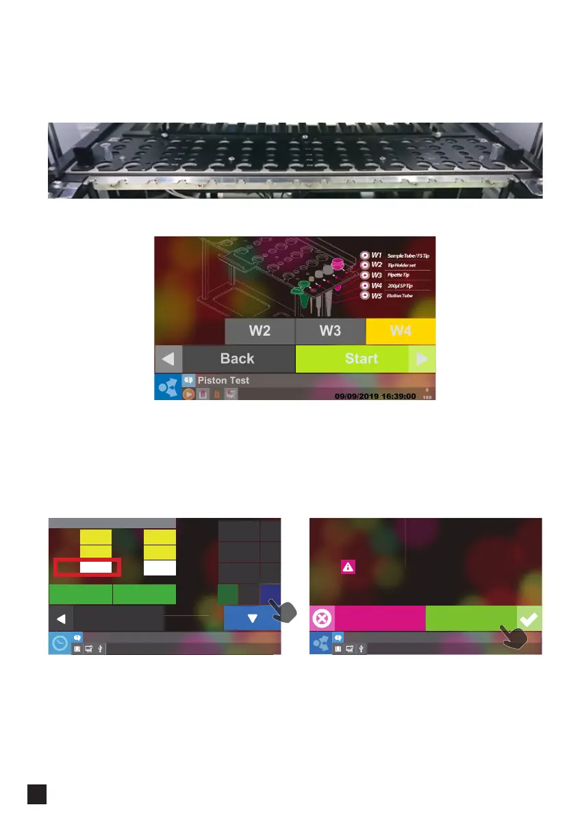 1. Put the Tips (200 μ l) at the W4 in the positions 1 and 16 on the T-rack.