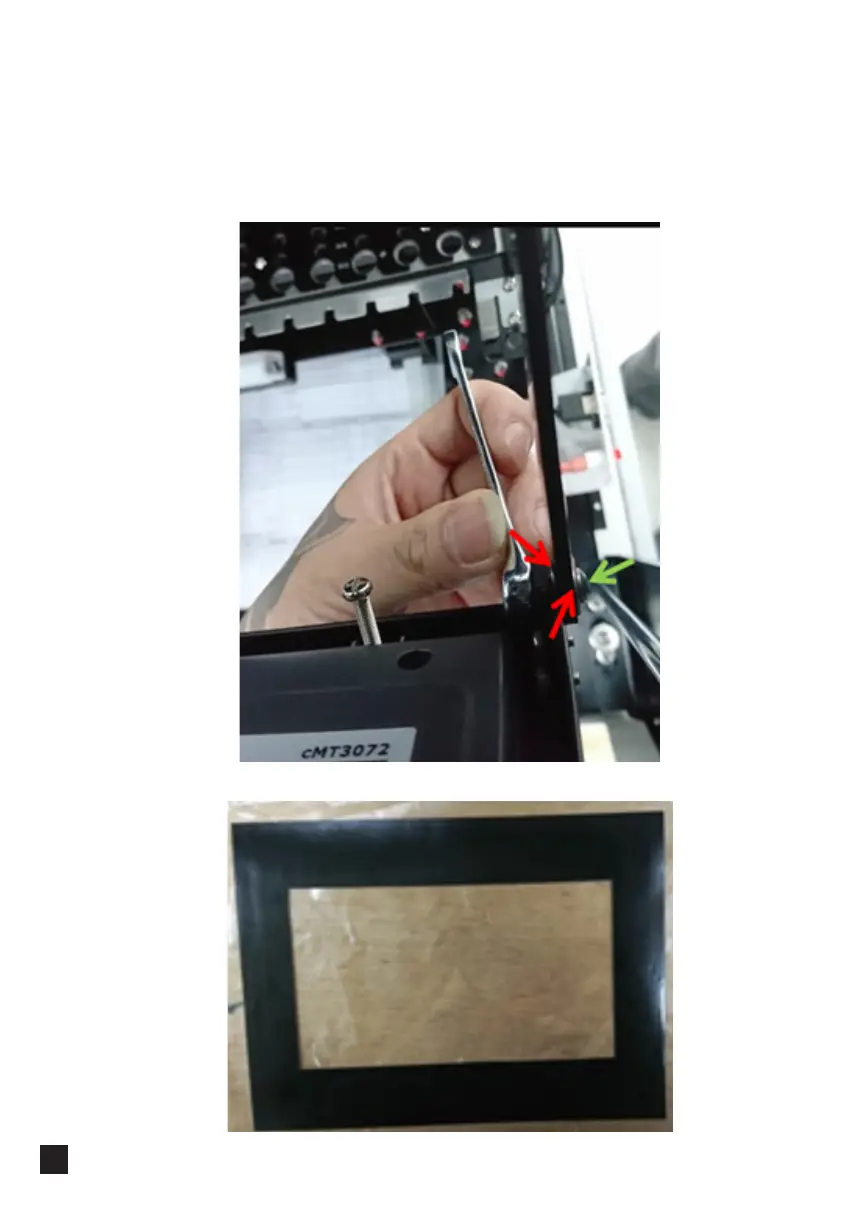 screen panel movement, push and pull the panel for testing and tighten the nut (on