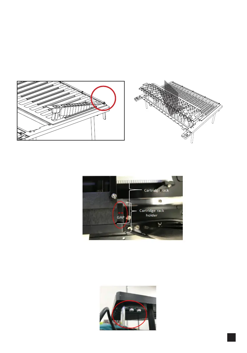 Remove the back lid to check if there is a gap between the cartridge rack and the base