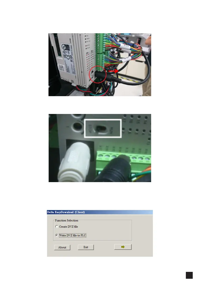 2. Turn the switch on PLC (marked with white frame) from "Run" to "Stop", plug the