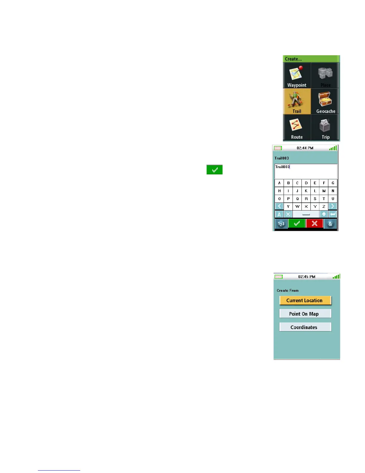 4. Use the keypad to enter a name for the trail. (The default name