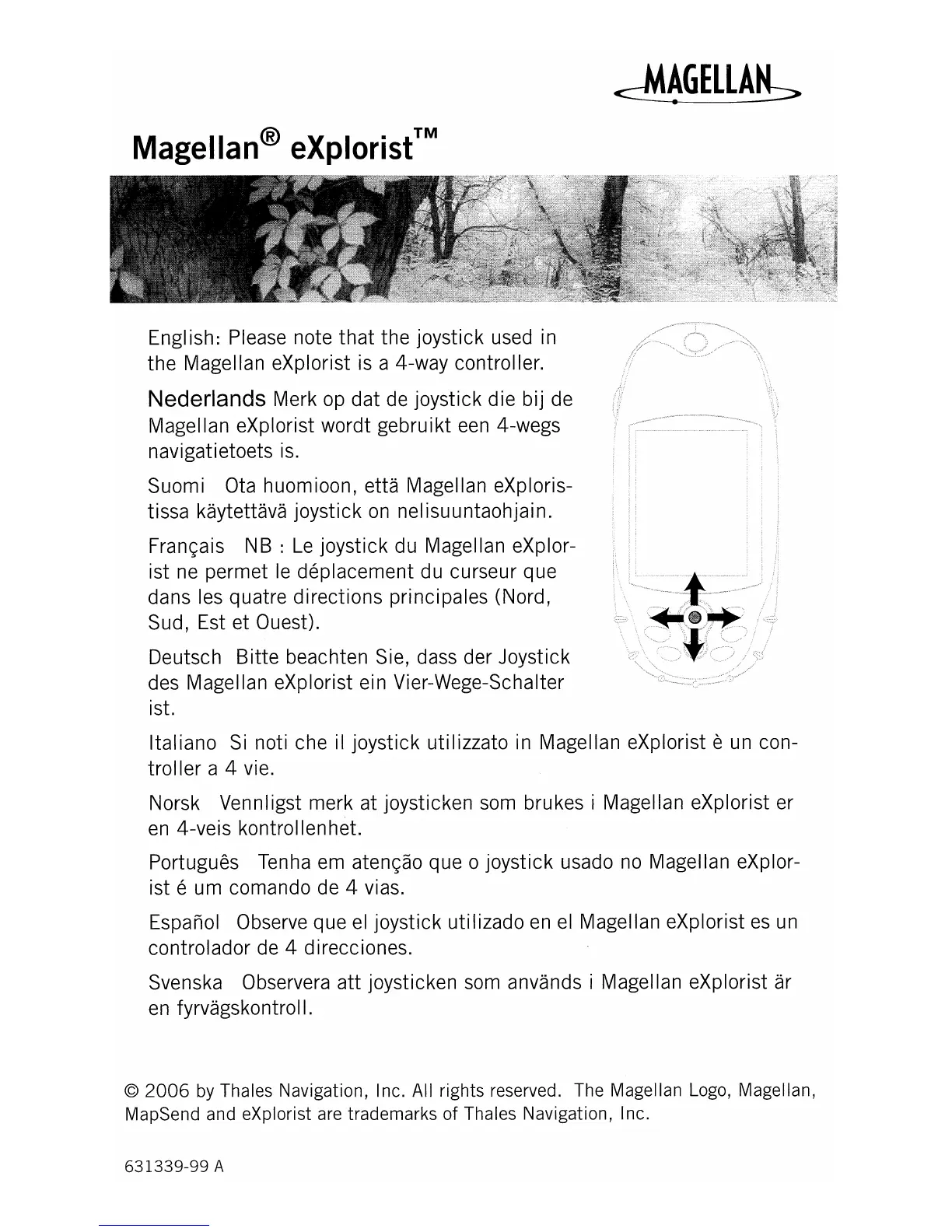 Norsk Vennligst merk at joysticken som brukes i Magellan eXplorist er