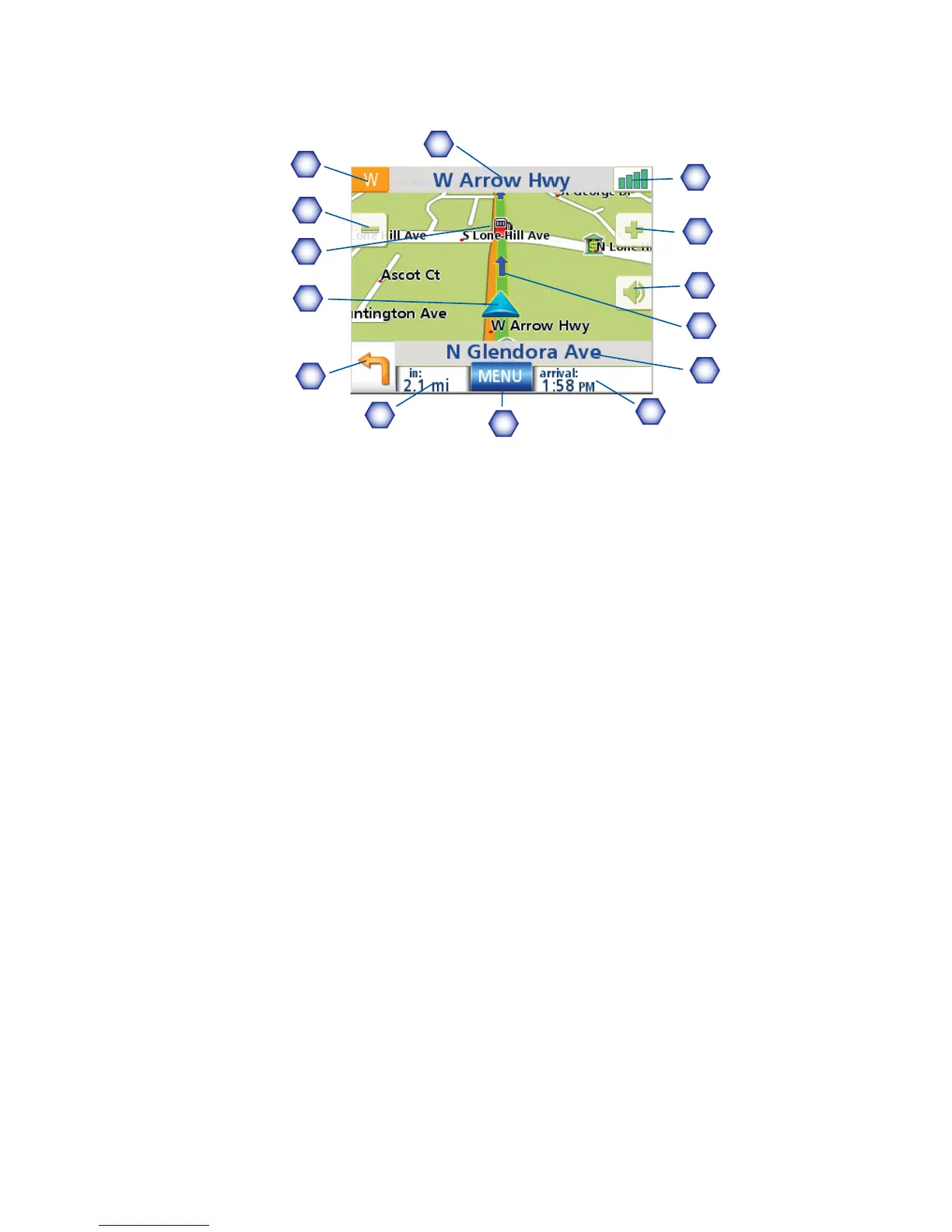 F Next maneuver icon. Tap on the icon to display the Maneuver List screen.