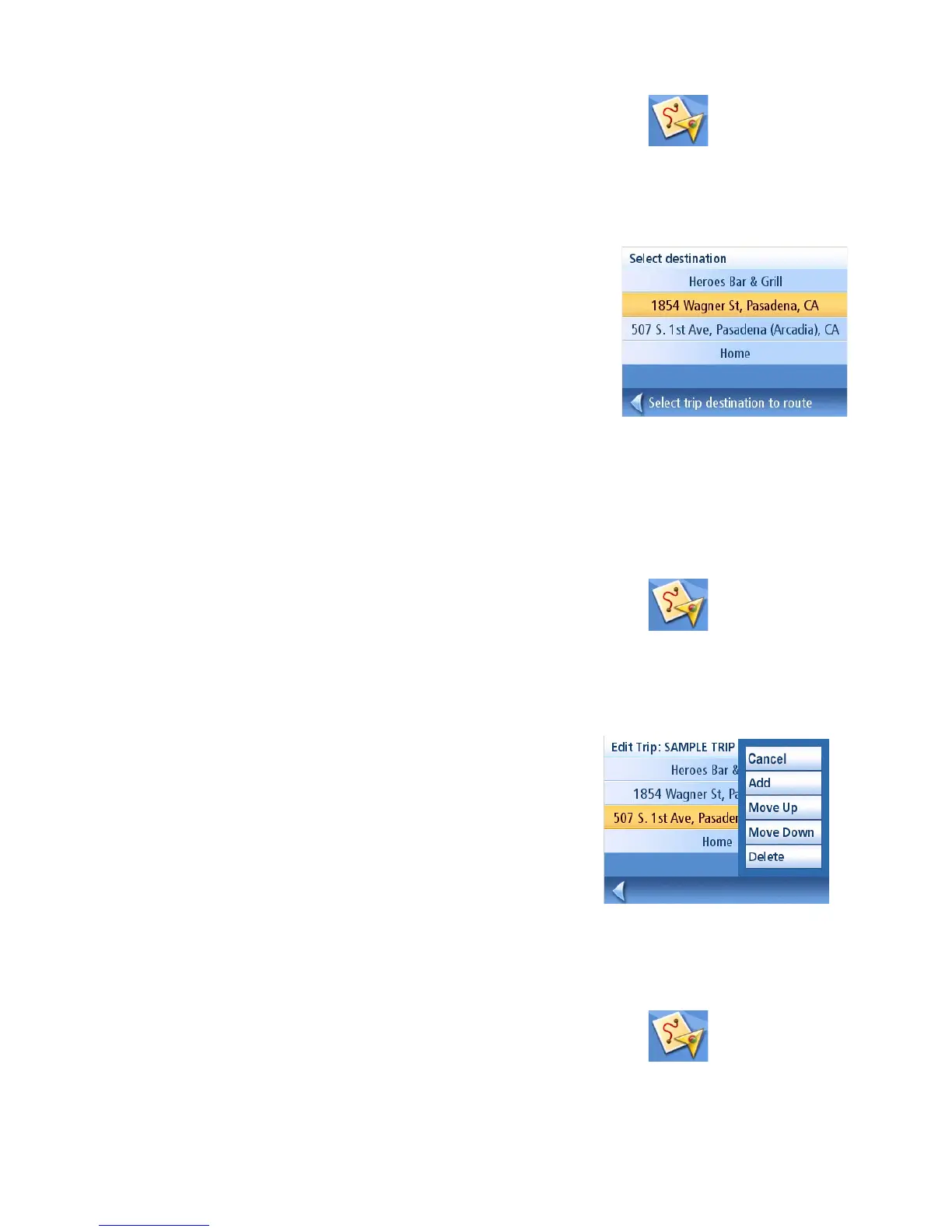 3. Select the trip to be used from the stored trips list.