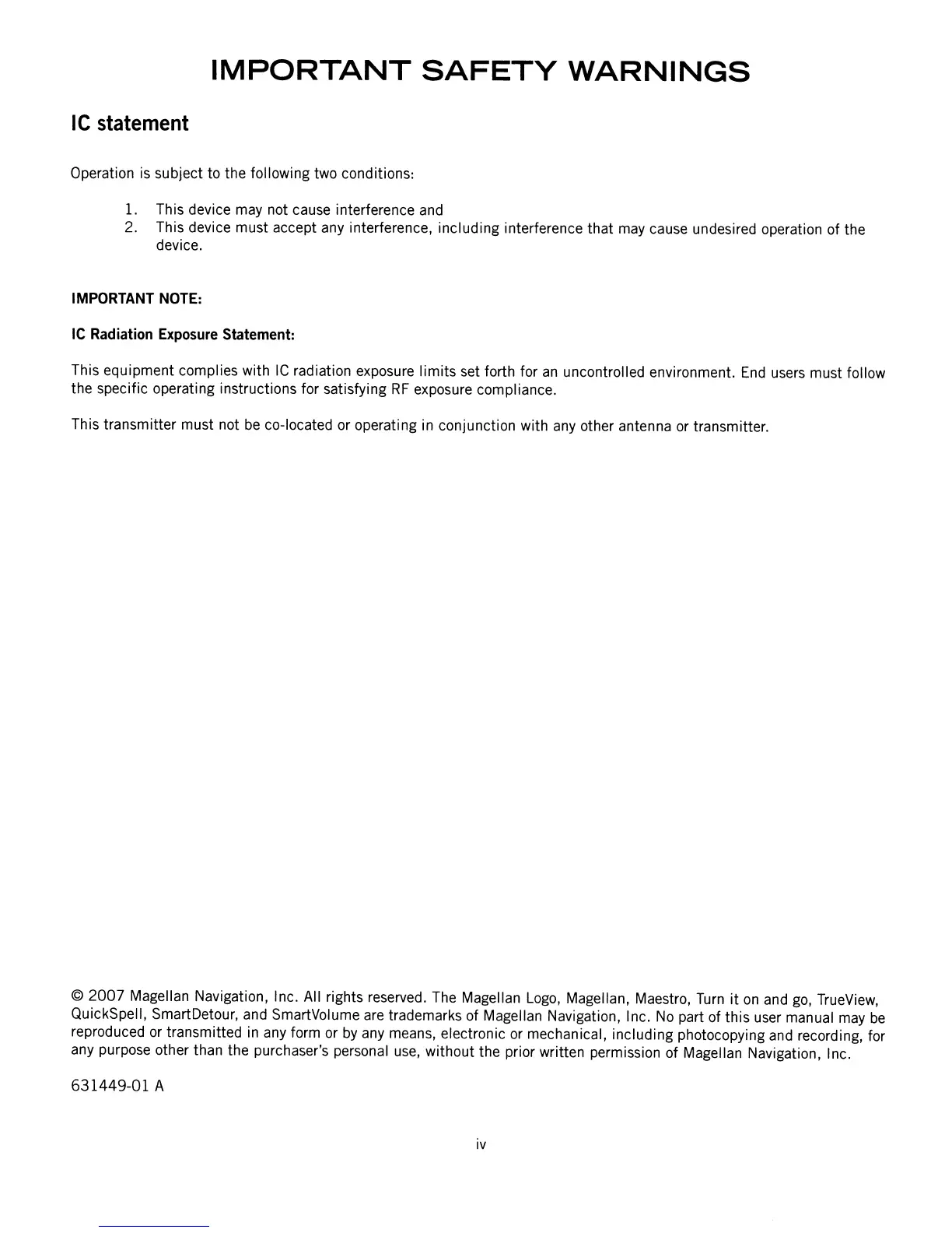QuickSpell, SmartDetour, and SmartVolume are trademarks of Magellan Navigation, Inc. No part of