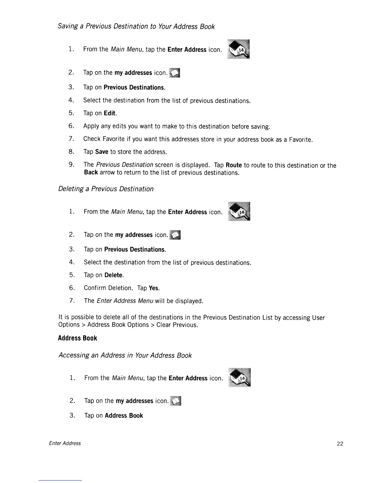 Deleting a Previous Destination
