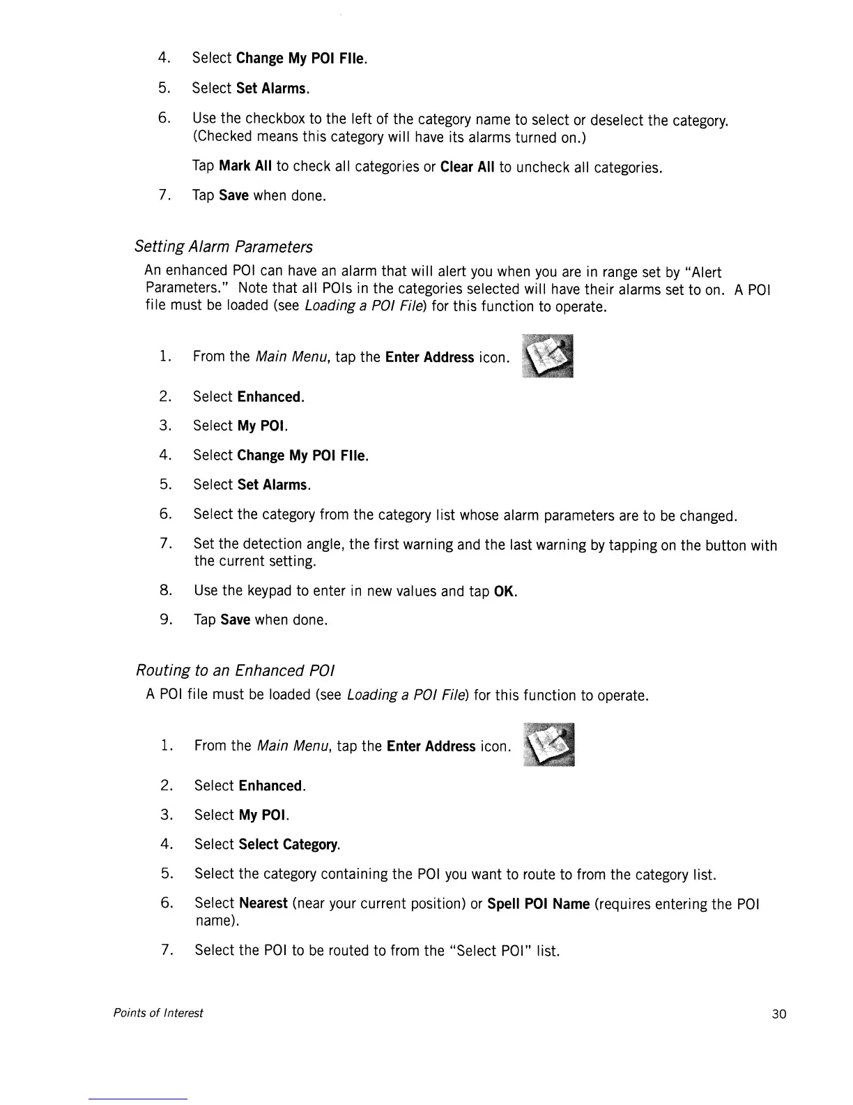 Magellan Maestro 4040 - Setting Alarm Parameters; Routing to an Enhanced POI