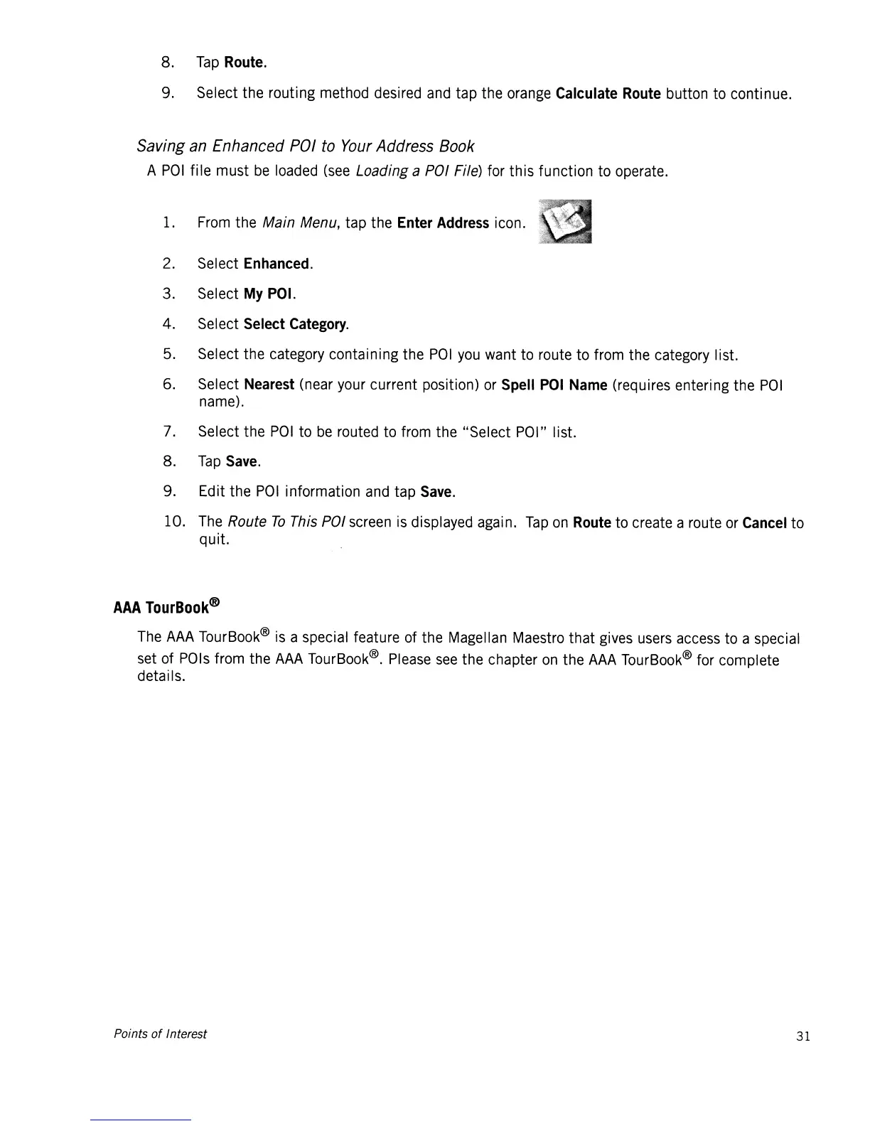 The AAA TourBook® is a special feature of the Magellan Maestro