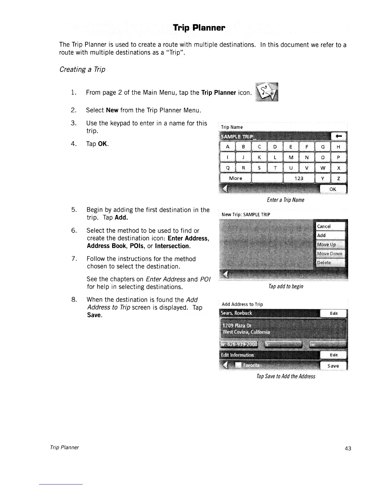 Address to Trip screen is displayed.