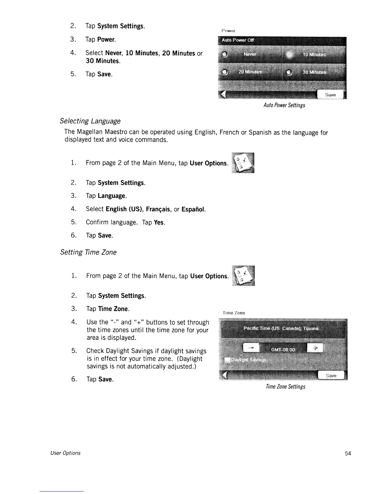 Magellan Maestro 4040 - Selecting Language; Setting Time Zone