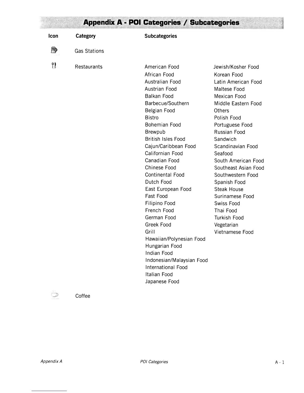 POI Categories