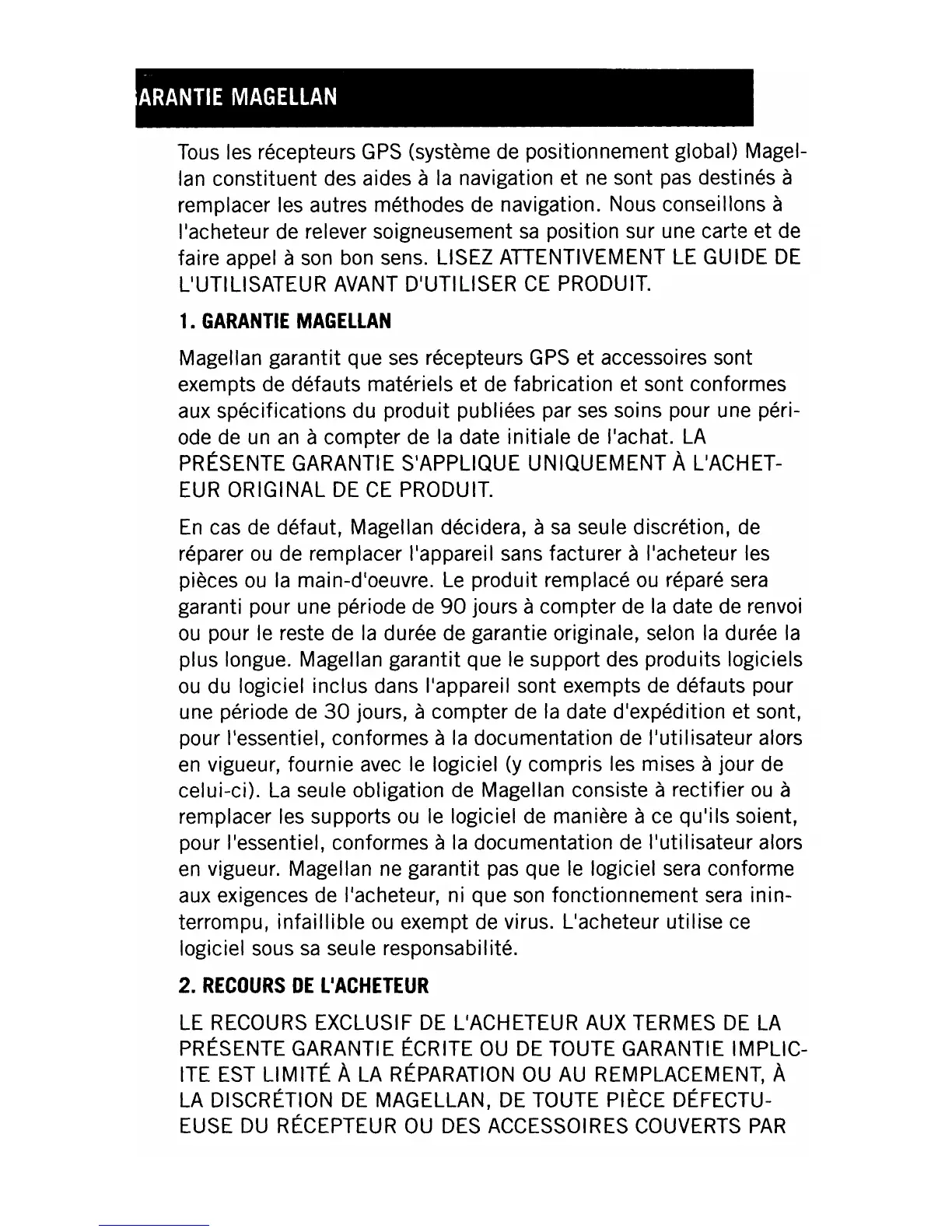 PRESENTE GARANTIE S'APPLIQUE UNIQUEMENT AL'ACHET-