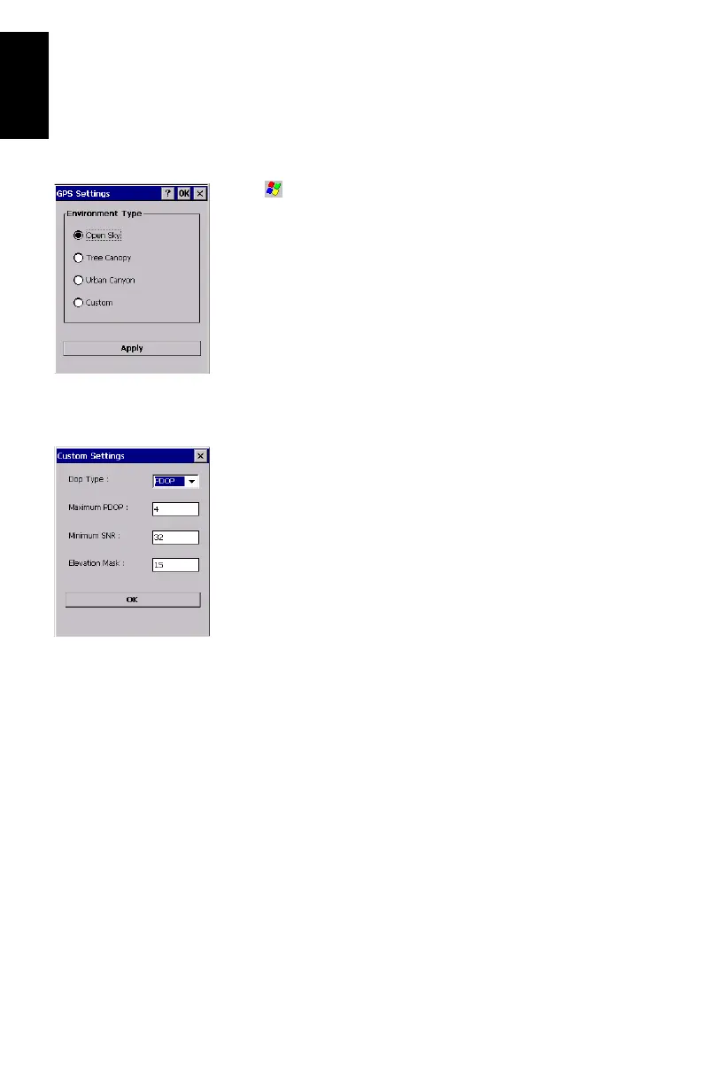 The GPS Settings tool is used to set the environmental condi-