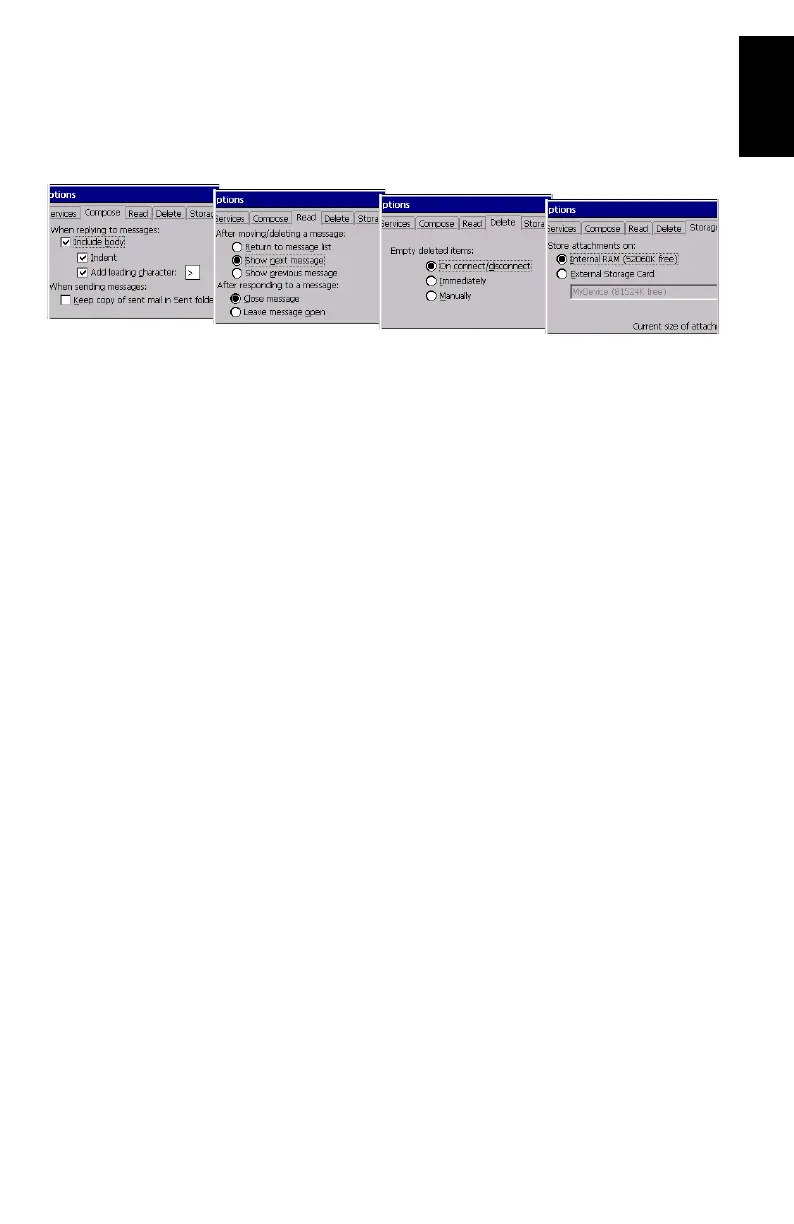 now view and edit the Inbox options (Compose, Read,