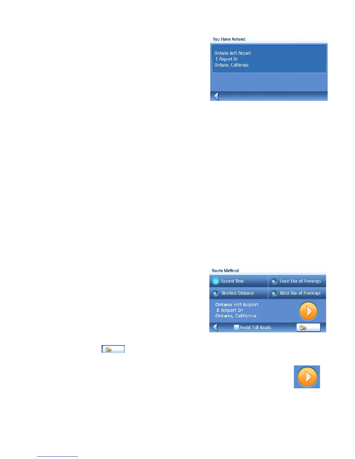 screen with the destination shown. Tap on ESC to return to the Route Method screen.