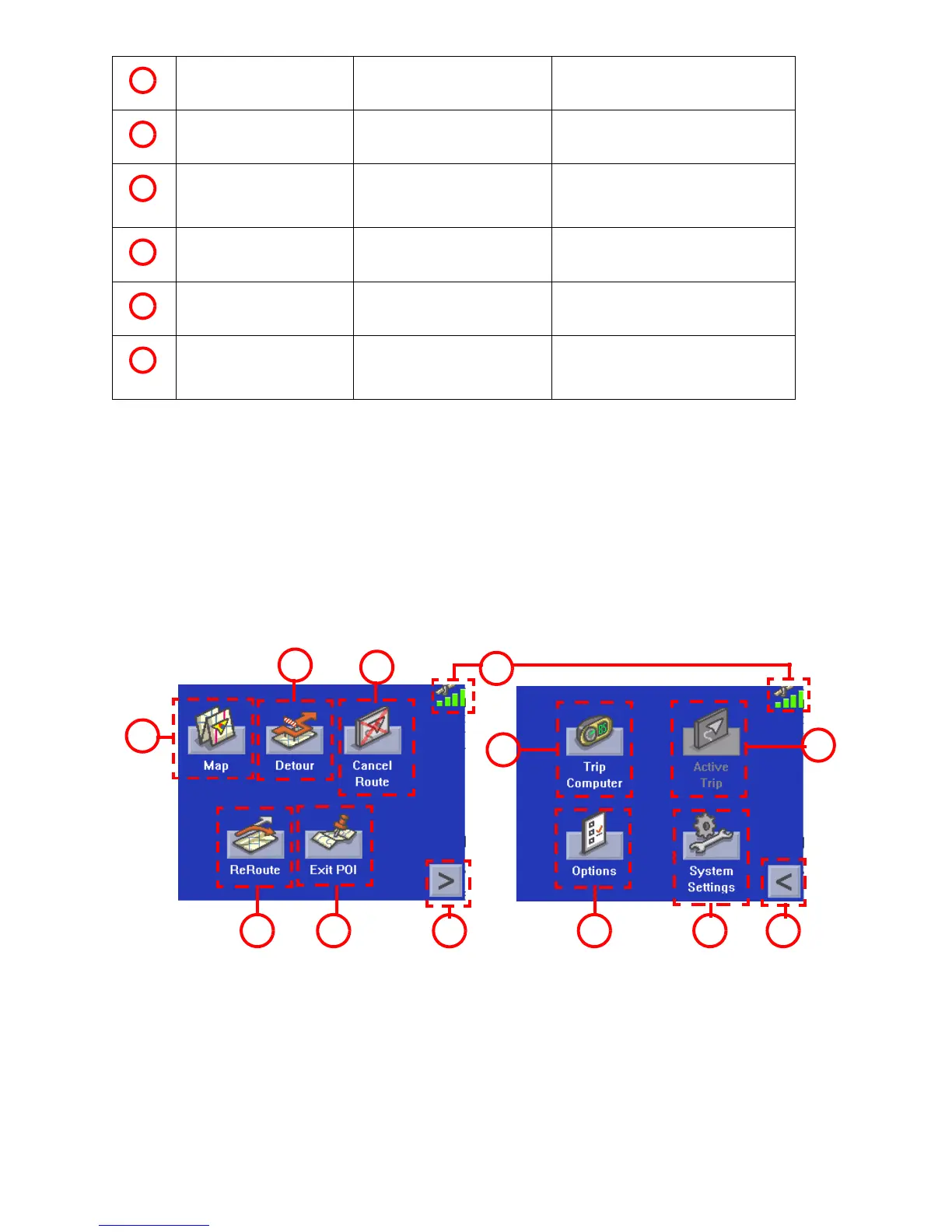 The Main Menu has two modes; active trip and normal. When a trip is active the Main