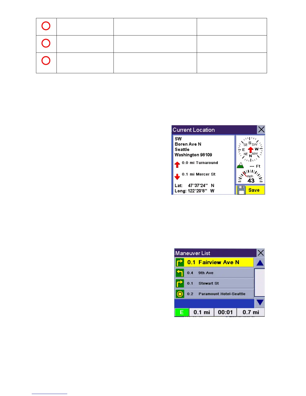 Maneuver List Screen (Tap the next maneuver bar on the Map screen)
