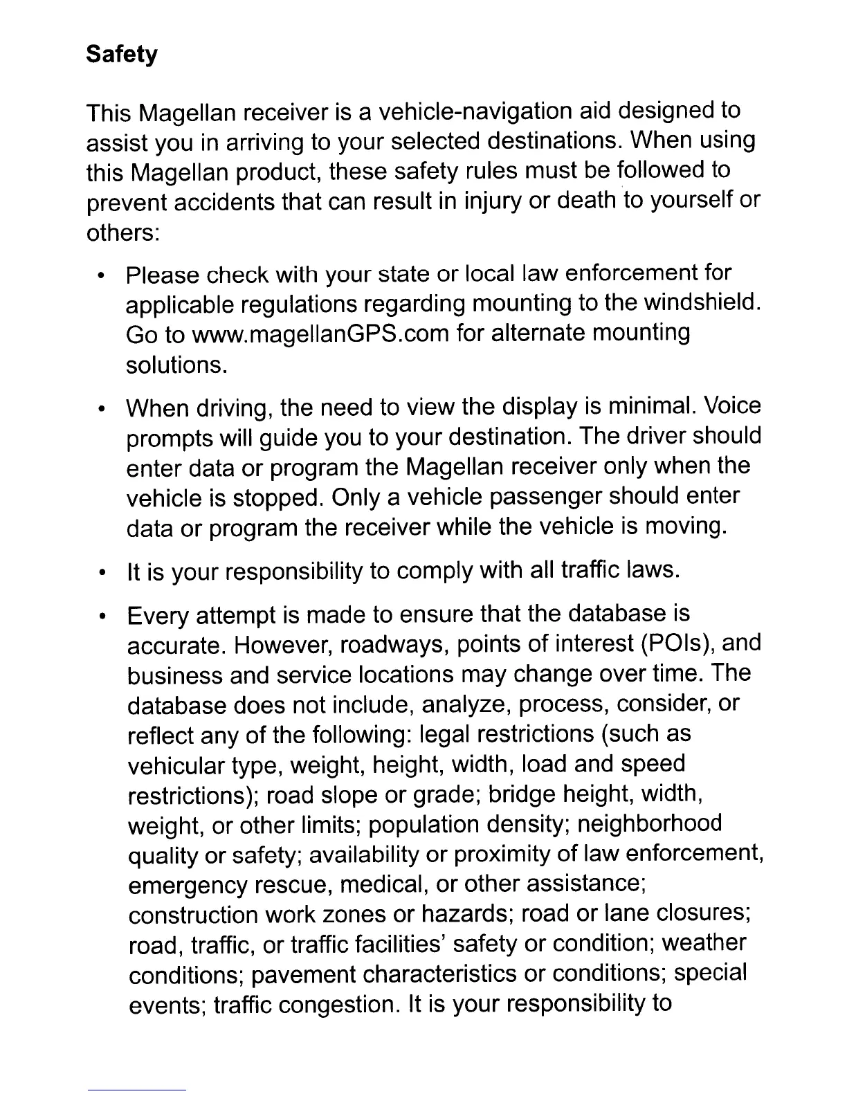 • It is your responsibility to comply with all traffic laws.