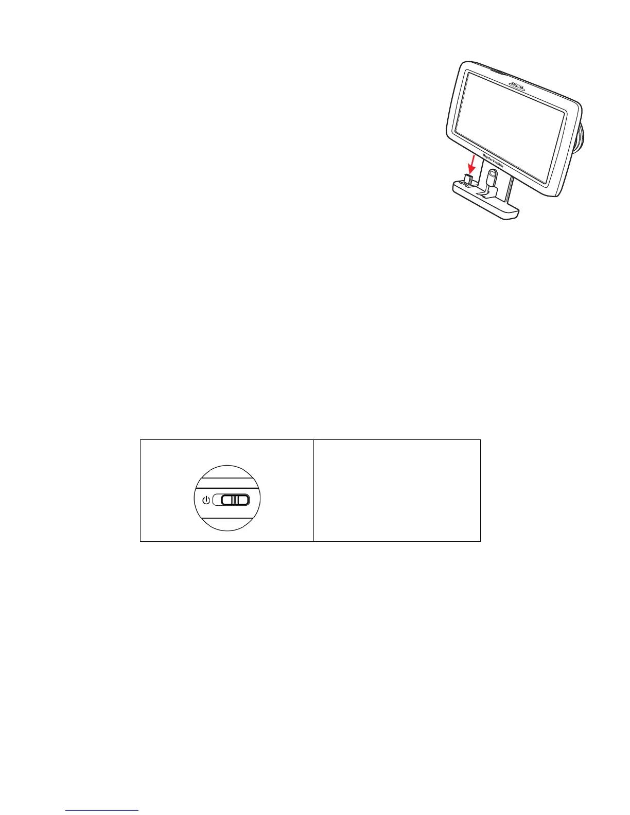 The Magellan RoadMate uses a spring-loaded slider switch to power the receiver on and off.