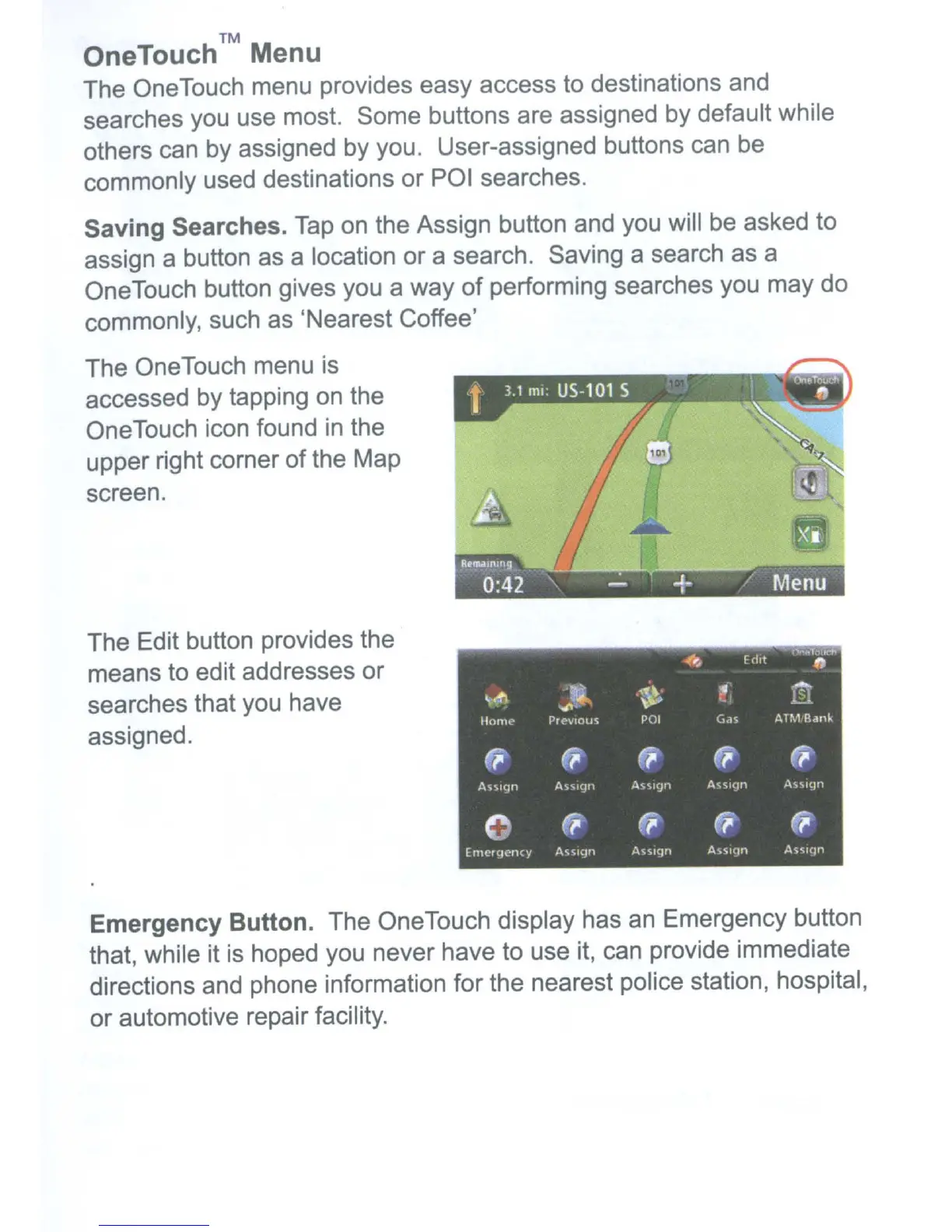 The OneTouch menu provides easy access to destinations and