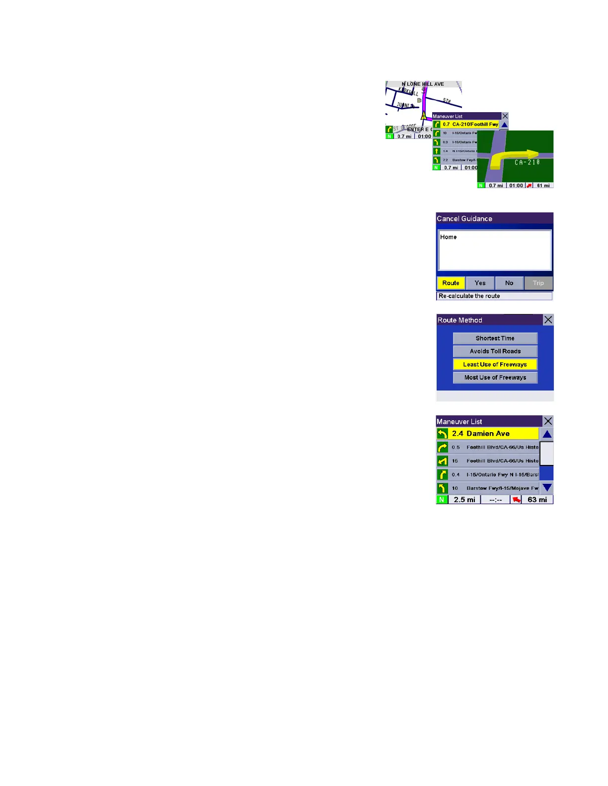 While viewing the Map screen, the Maneuver List screen, or the