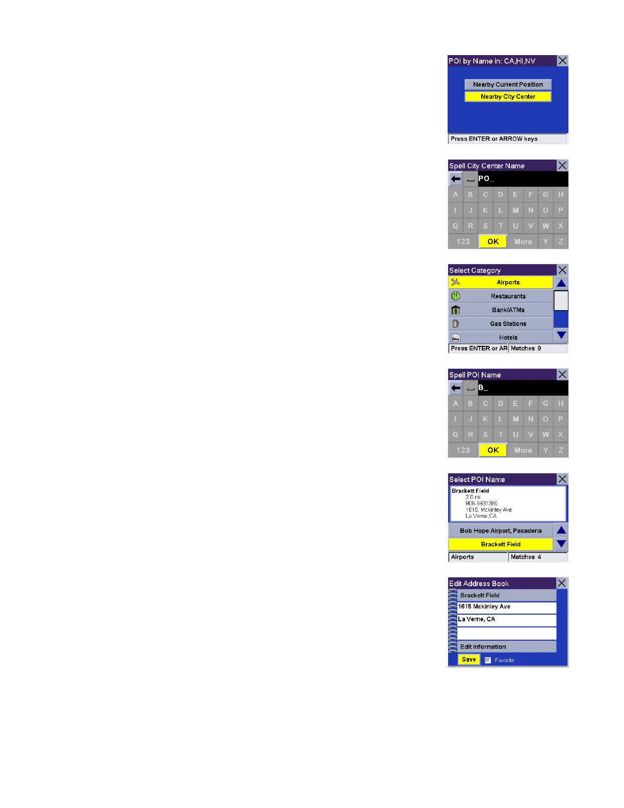 Enter the first few characters for the POI name. After you have selected the