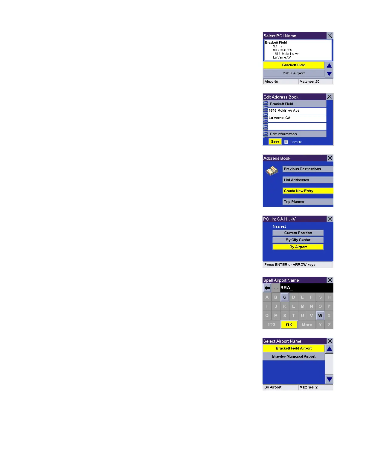 Use the navigation key to scroll the list up or down and select the desired Airport.