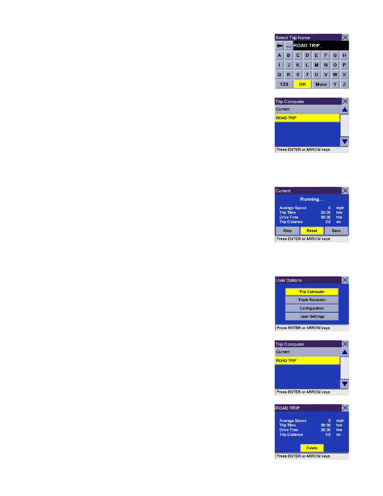 Use the keypad to enter a name for the saved Trip Report and select OK.