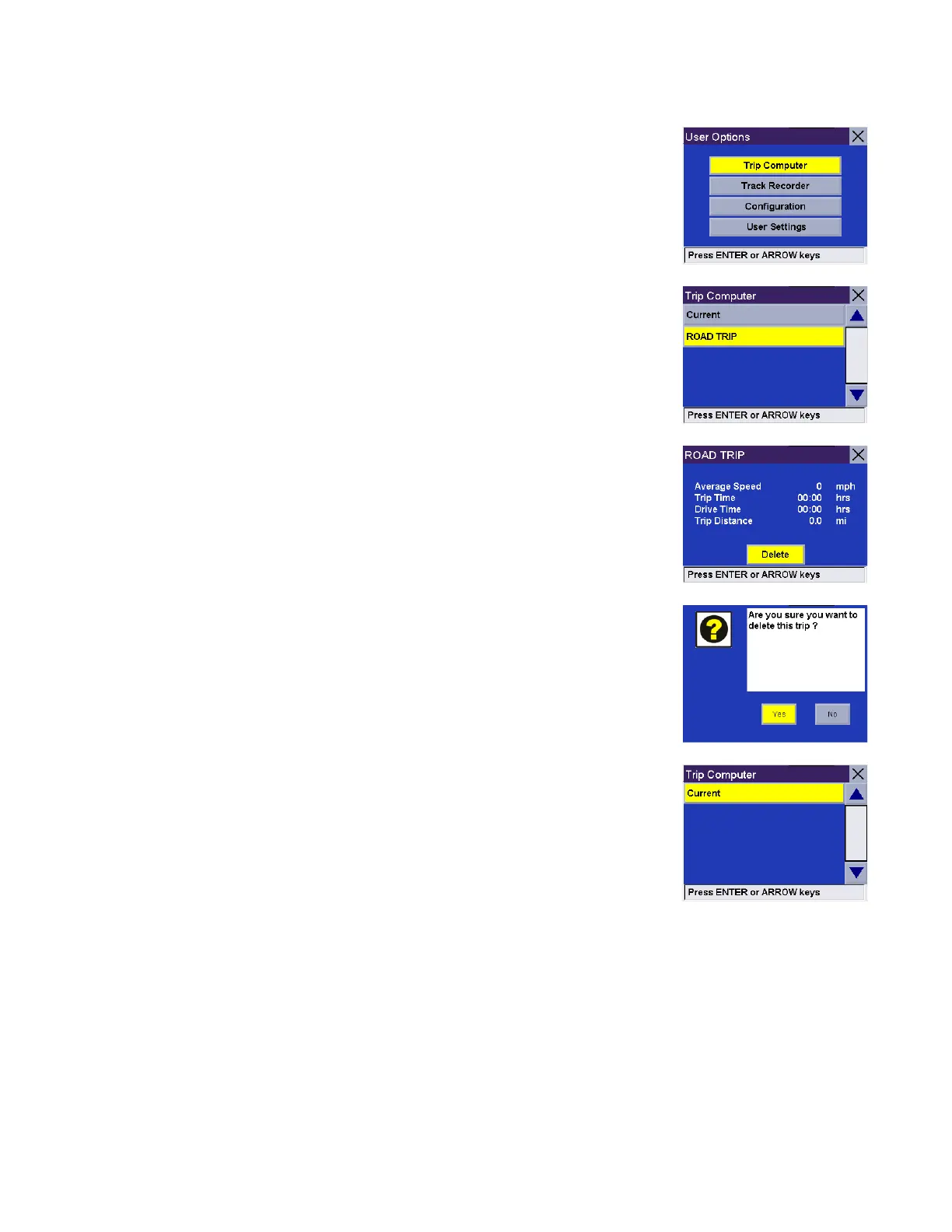 The Trip Report is deleted, and you are returned to the Trip Computer screen.
