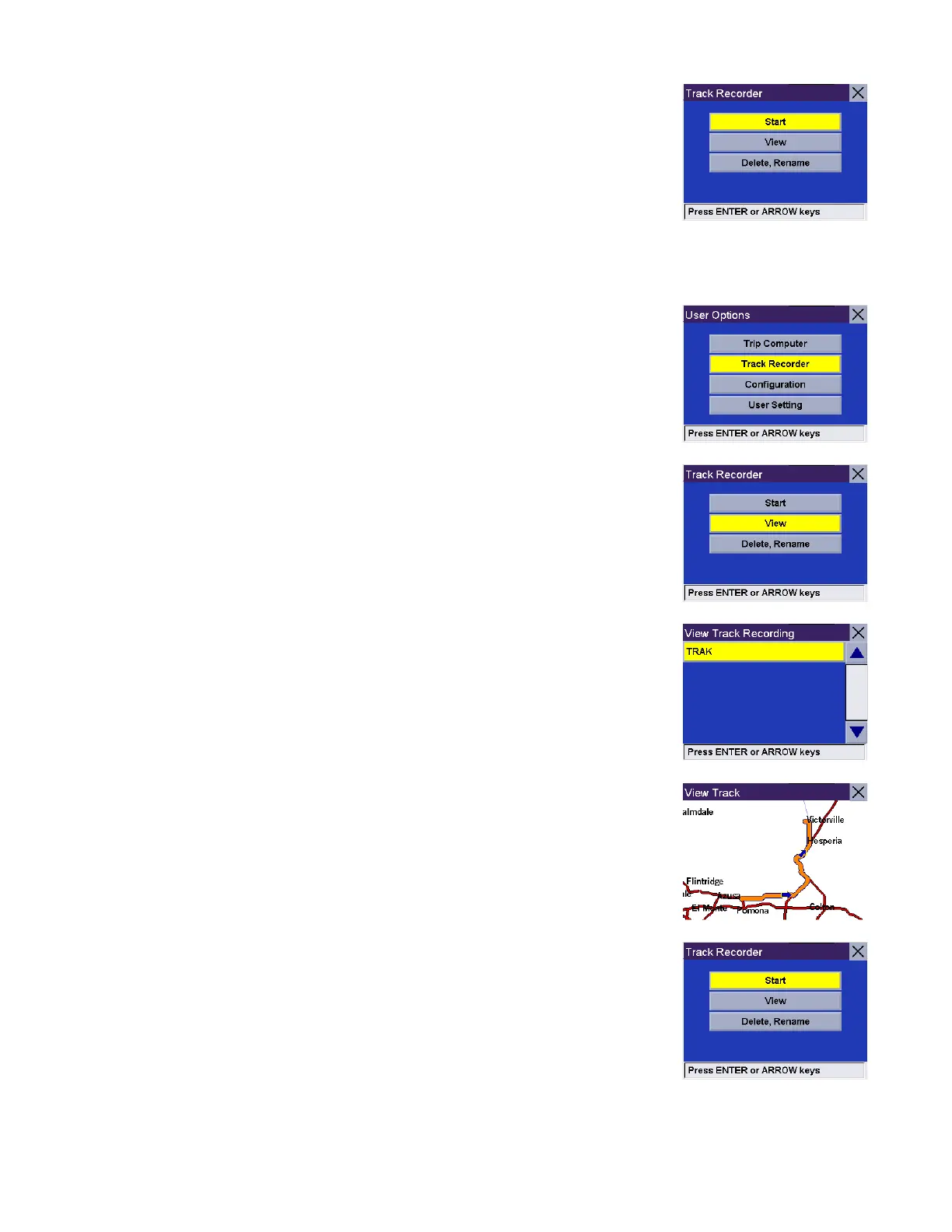 From any screen press the Option button and select Track Recorder.