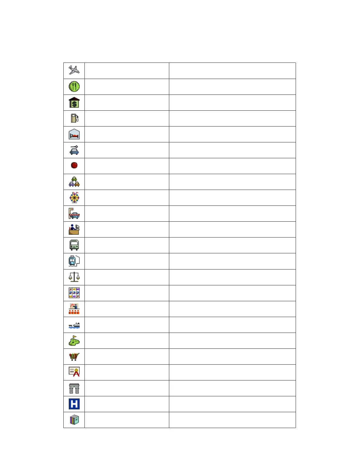The Magellan RoadMate POI database has 41 different categories. The icons will appear on the Map screen (if enabled):