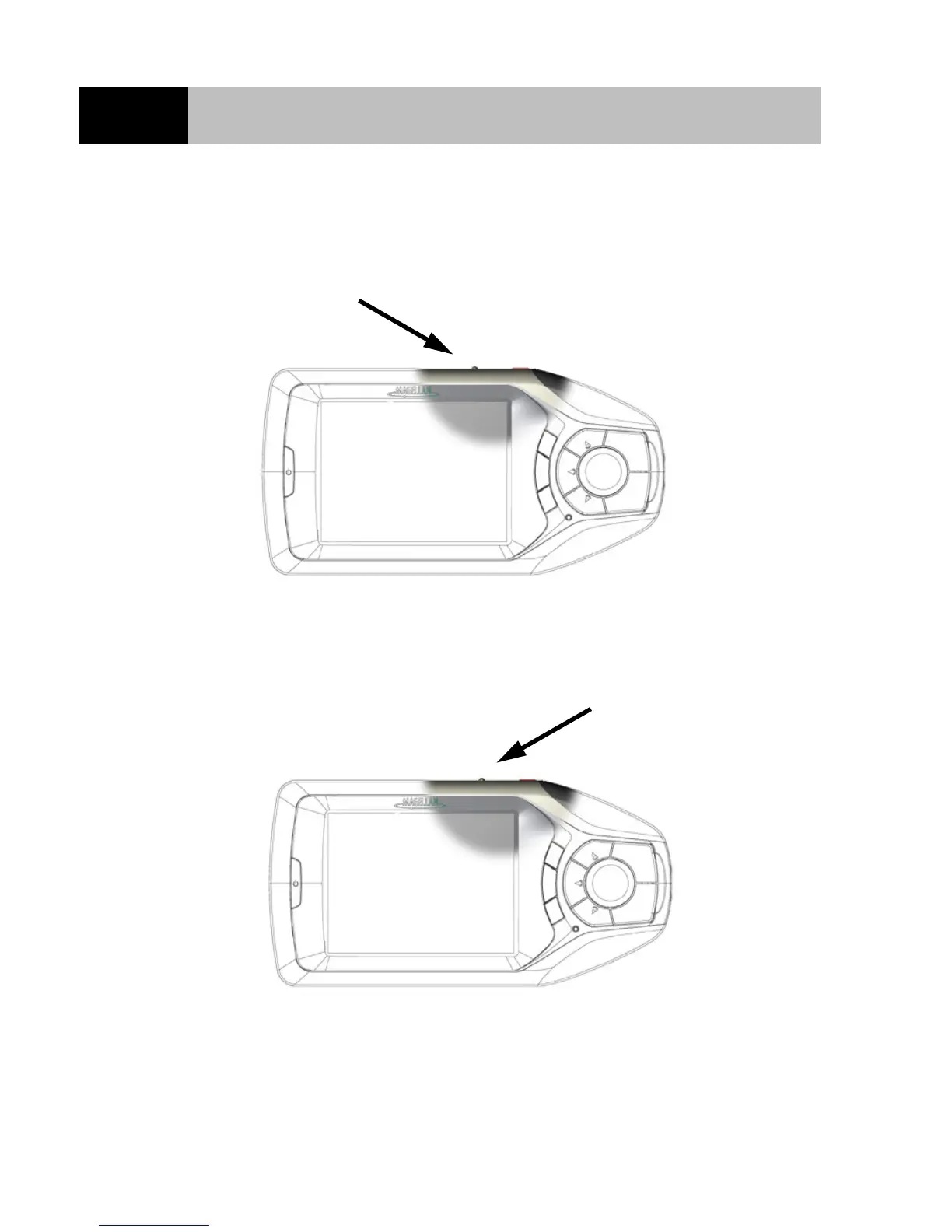 The volume control is located on the top of the Magellan RoadMate. Use the thumbwheel to set the