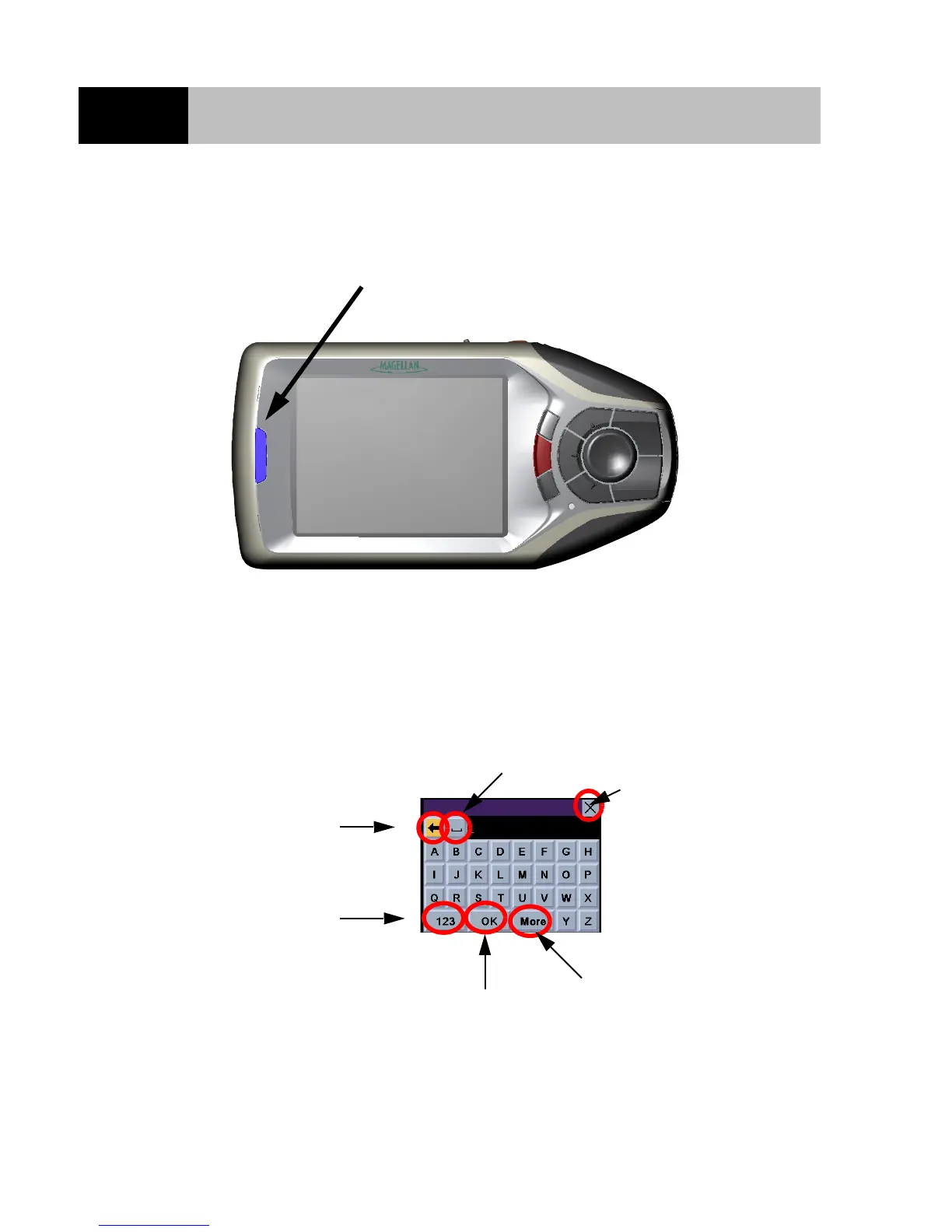 Whenever you need to input names, street addresses, etc., the Magellan RoadMate will display a