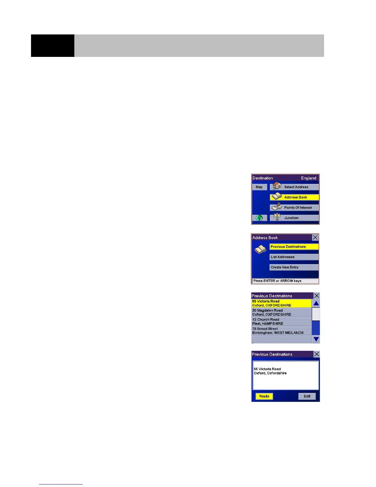Selecting a Destination from a Previous Destination