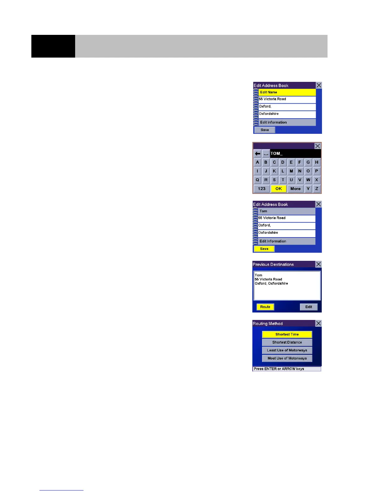 previous destination. Select the "Route" button and press Enter.