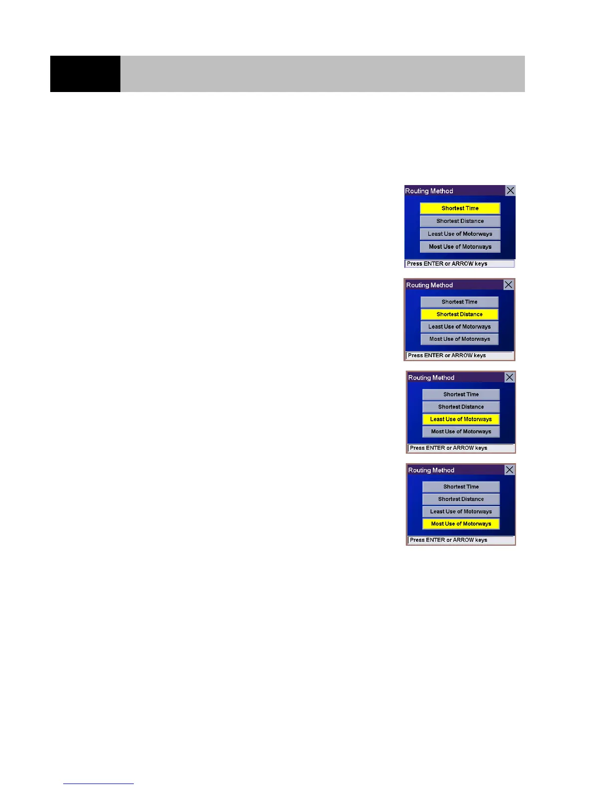 selected, the Magellan RoadMate prompts you for the method that will be used to calculate the route.