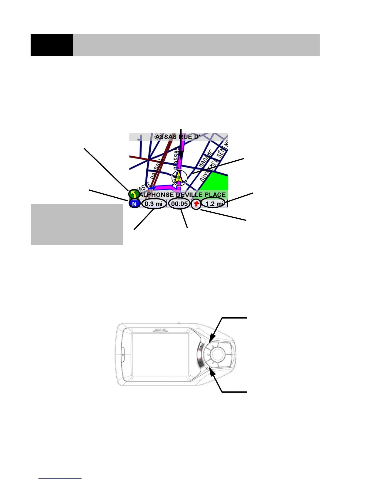 The Guidance screen is the most commonly used screen in the Magellan RoadMate and provides you